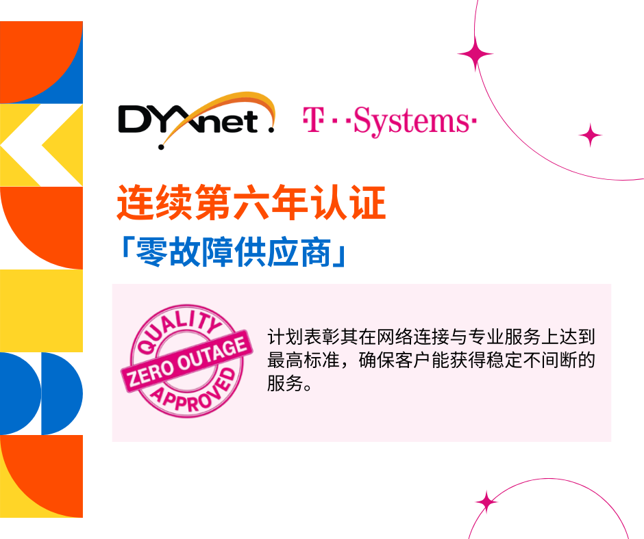 衷心感谢T-Systems International连续第六年认证第一线为「零故障供应商」! 这持续的肯定反映了我们团队对提供高质网络解决方案的努力。