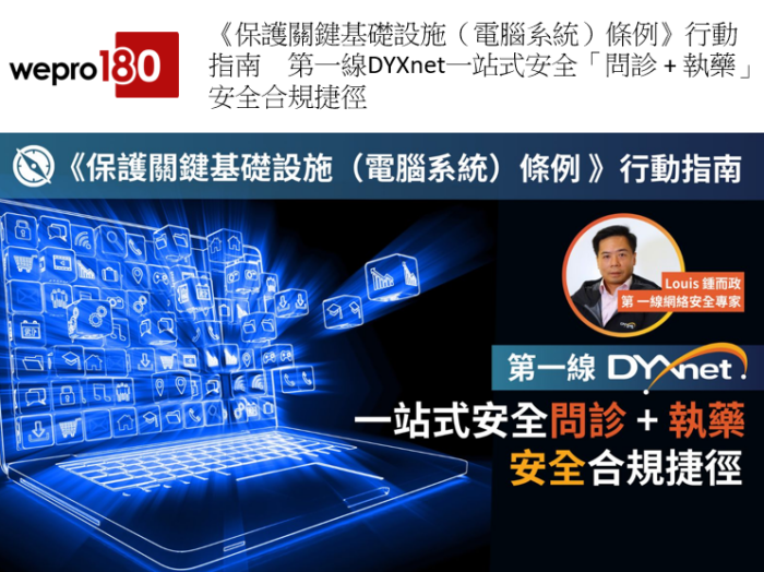 【Chinese Only】WePro180: 《保護關鍵基礎設施(電腦系統)條例》行動指南 第一線DYXnet一站式安全「問診 + 執藥」 安全合規捷徑
