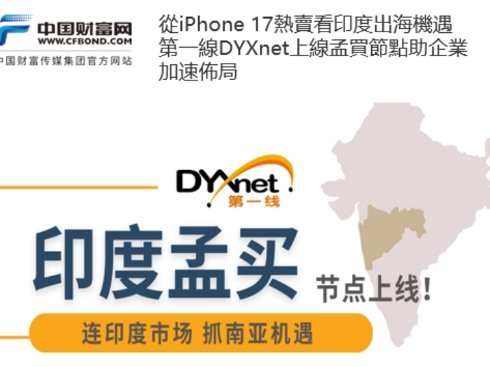 中國財富網: 從iPhone 17熱賣看印度出海機遇 第一線DYXnet上線孟買節點助企業加速佈局